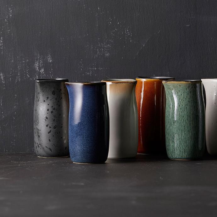 avec Christian Bitz et propose de la poterie robuste dans des nuances de vert,